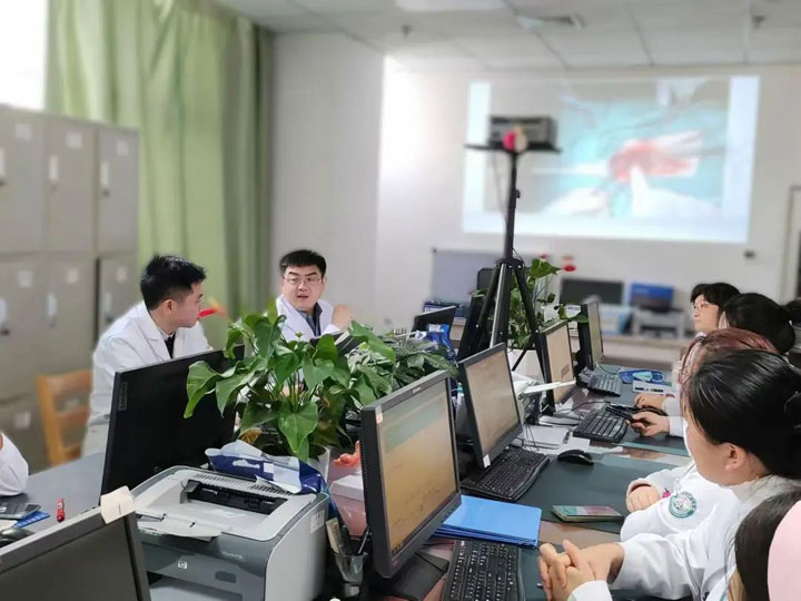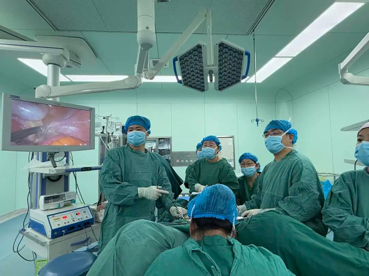 门诊结束后,张坤教授与淮南东方医院集团总医院妇产科的同事们共同进行了病历讨论,并为3名患者提供了手术指导,在共同探讨了手术中的难点和要点后,东方总院妇产科的医护人员们纷纷表示收获颇丰。接着,张坤教授重点介绍了北京大学第三人民医院妇产科团队自主研发的自身筋膜技术,用于治疗女性盆腔器官脏器脱垂、盆底重建、腹腔镜下高位骶韧带悬吊术,以及全国首例单人操作腹腔镜全子宫切除术等技术。他结合自己丰富的临床经验和专业知识,为东方医护人员带来了精彩的讲解和完美的手术示范,内容涵盖患者疾病诊疗方案、特殊病人的救治等多个方面,内容实用且针对性强。