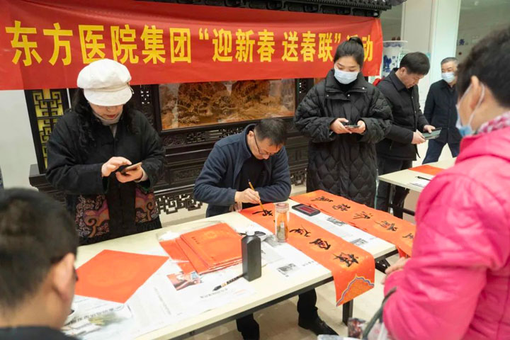 桃符迎新春,墨香送祝福,为营造欢乐祥和的春节氛围,弘扬优秀传统文化,1月25日上午,淮南东方医院集团组织单位书法爱好者齐聚东方总院门诊大厅,举办“迎新春,送春联”活动。