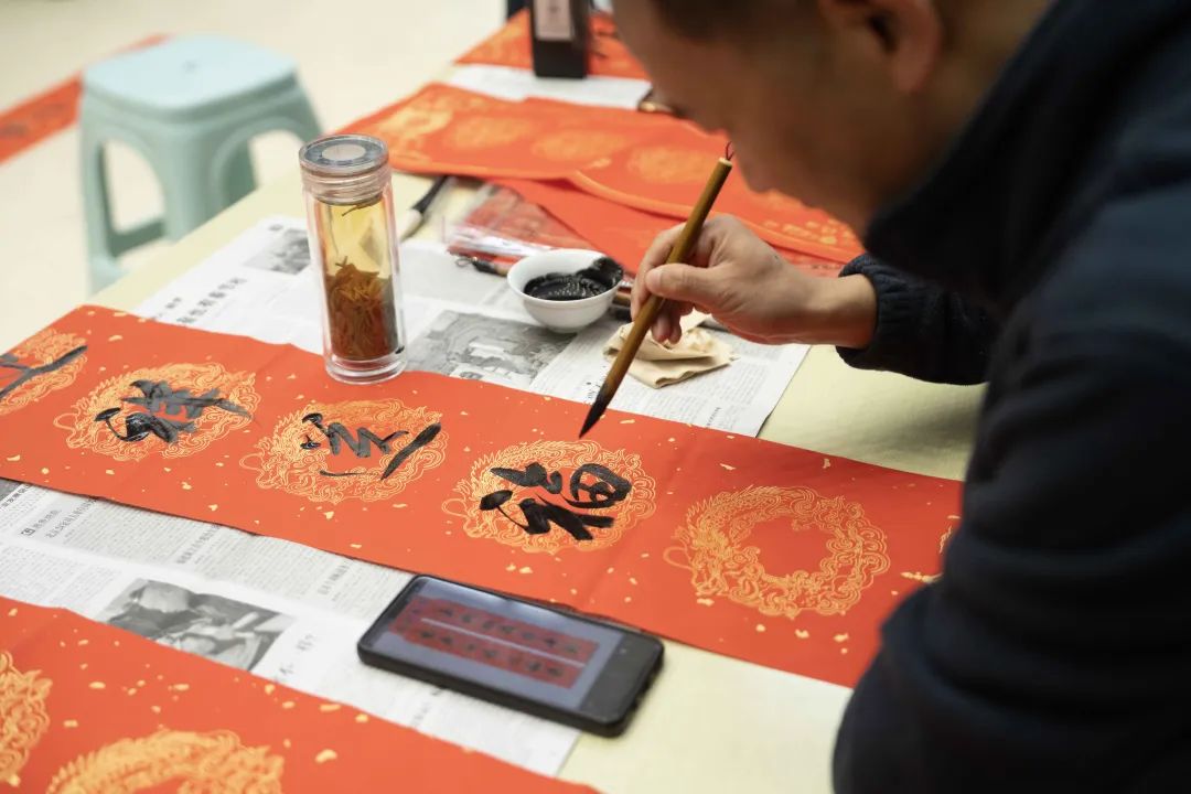 活动现场,喜庆的红纸有序铺展,墨香四溢。淮南东方医院集团董事长助理、神经内科专家方云亮、肿瘤医院常务副院长谢军以及东方总院影像科宋智星、心功能室杨冬冬、输血科李卓、超声科李方黎、孙诗怡、广济医院张林护士长等多名书法爱好者挥毫泼墨、笔锋灵动,似行云流水,将新春祝福倾注于笔端。转瞬间,饱含情感的春联与一张张红彤彤的“福”字跃然纸上,洋溢着新春的喜悦,传递着浓浓的年味,更承载了医院对广大市民的美好祝愿。