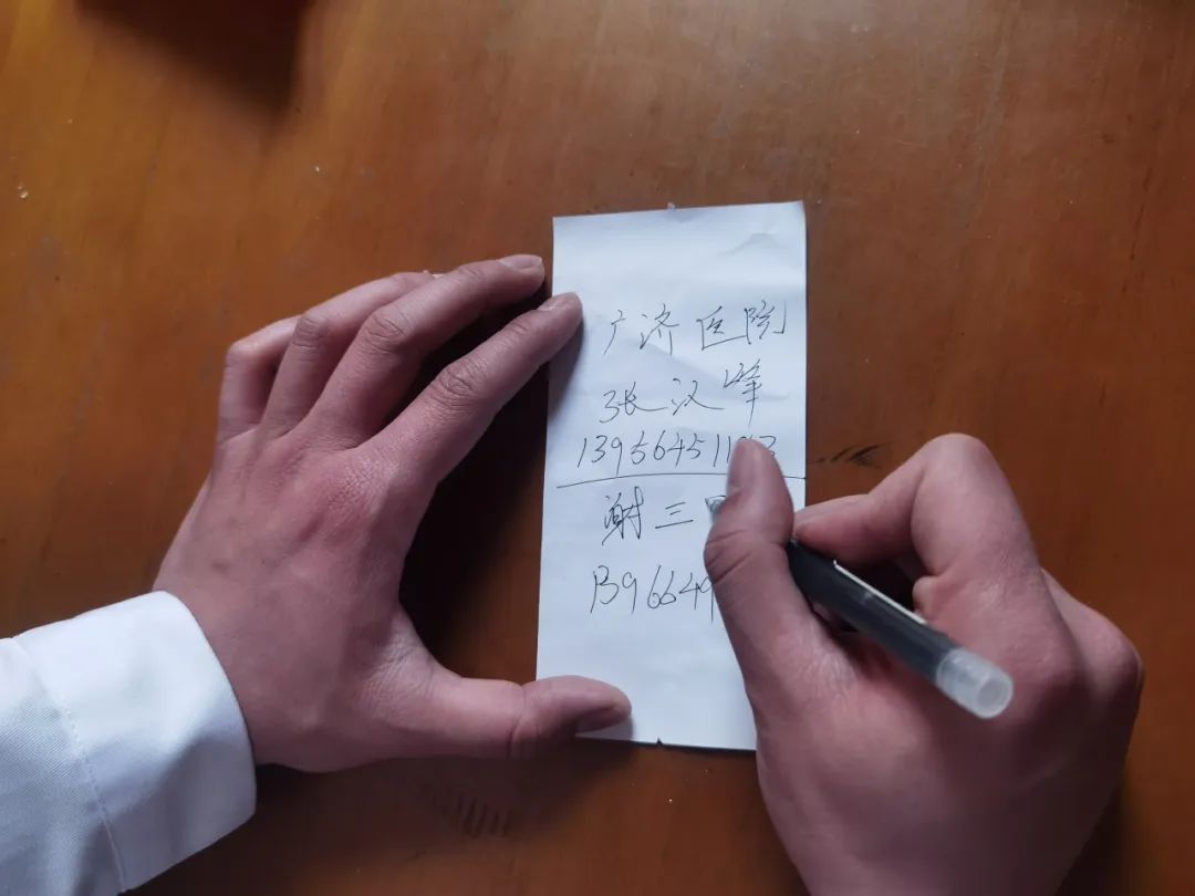 穿过一栋栋居民楼,李医生和范老师又来到另一户居民家中。因为老伴脑梗行动不便,需要长期陪护,老人的女儿联系社区,为家中的父母亲送药。“老伴长期住院康复,之前在东方总院。”为了方便老人的老伴康复治疗,他们为老人留下自己和广济康复科医生的电话。