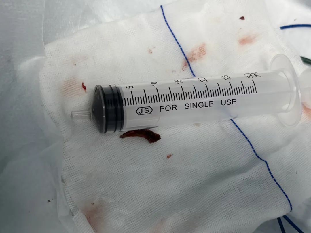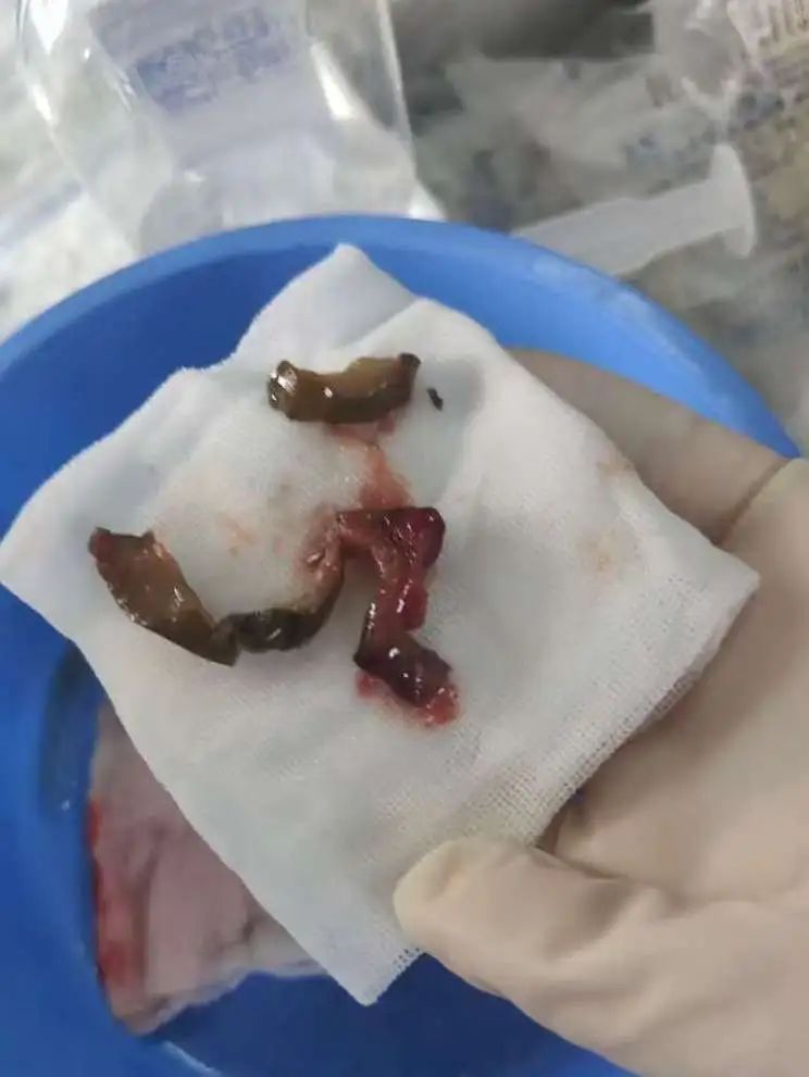 在确定了治疗方案后,东方总院呼吸与危重症学科医疗中心杨传留院长亲自上阵,运用气管镜技术为王大爷进行手术,无影灯下展开了一场惊心动魄的“气道寻宝”。手术过程中,杨院长凭借精湛的医术和丰富的经验,精准地定位到了被肉芽包裹的鱼骨,小心翼翼的将鱼骨与周围组织逐步分离,最终将这块呈倒钩状、长达2厘米的鱼骨完整取出。术后,王大爷的咳嗽和咳痰症状迅速得到了缓解,他的身体也逐渐恢复了健康。