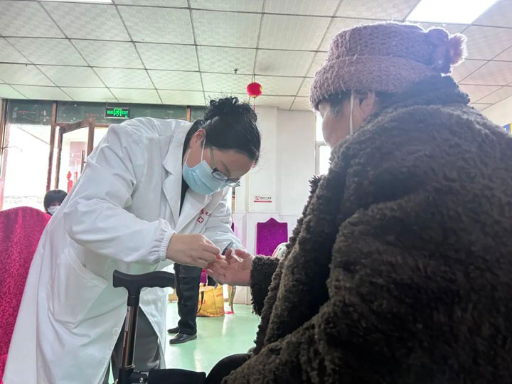 此次党员志愿者来自多个科室,有呼吸内科、心内科、外科、口腔科、中医康复科等专业领域的骨干,力求全方位满足老人们的健康需求。老人们听闻有医院来义诊,早早坐好等待。医护人员们热情接待每一位老人,耐心细致地询问他们的身体状况、日常饮食起居以及过往病史。内科医生为患有高血压、糖尿病等慢性病的老人测量血压、血糖,仔细调整用药方案,还不忘叮嘱老人注意日常饮食和运动;外科医生则专注于检查老年人常见的骨关节问题,现场为老人进行简单的推拿按摩,缓解他们的关节疼痛,并给予康复锻炼建议。