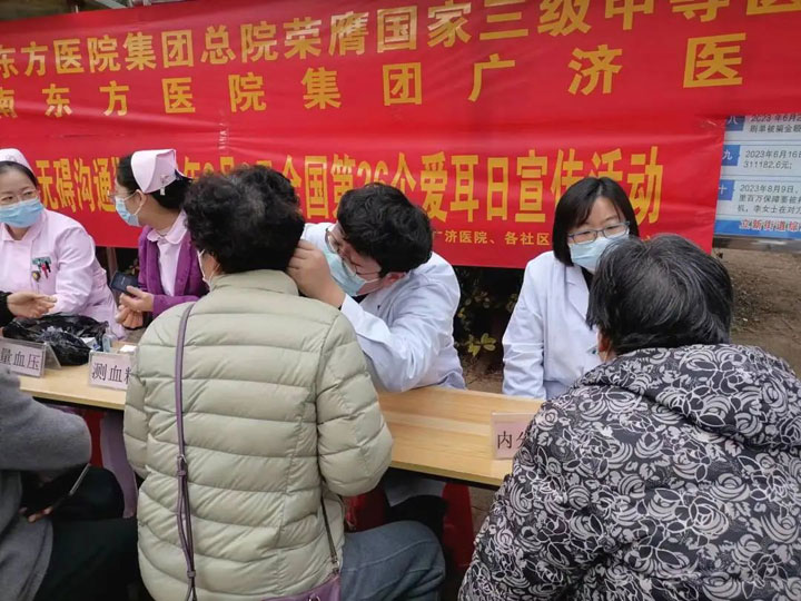 在第26个全国爱耳日来临之际,3月1日上午,广济医院组织耳鼻喉科及其他科室医护人员与谢家集街道、蔡家岗街道、谢三村街道社区卫生服务中心、立新街道社区卫生服务站,联合谢家集区残疾人联合会在金玉花园小区广场举办大型义诊活动。此次活动以“健康聆听,无碍沟通”为主题,为周边居民提供全方位听力健康服务,吸引百余位群众参与。