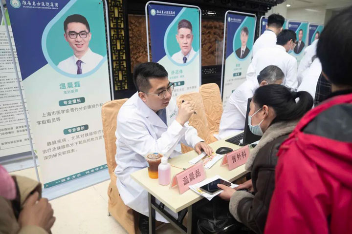 3月2日上午,淮南东方医院集团总医院门诊大厅内人头攒动,一场汇聚上海顶尖医疗资源的大型义诊活动在此开幕。来自上海交通大学医学院附属瑞金医院普外科、消化科、风湿免疫科、血液内科、骨科、泌尿外科等十余个领域的权威专家团队,为淮南市民提供免费诊疗服务。活动当天共吸引上千名患者慕名前来,专家们以精湛的医术和耐心的解答,让市民在家门口便享受到一线城市的优质医疗资源,真正实现了“名医零距离,健康惠万家”的惠民目标。