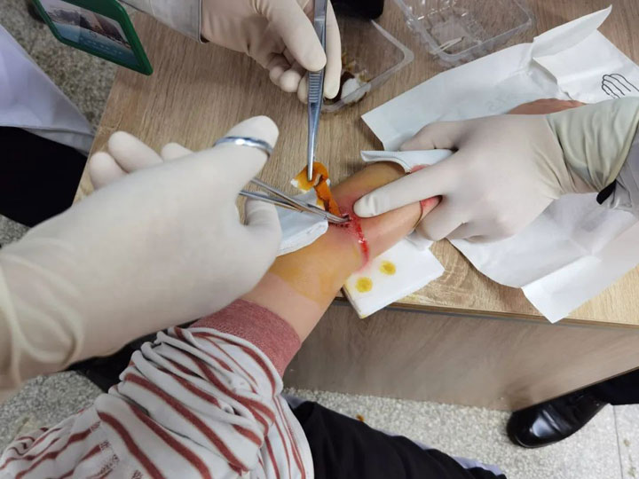 普外科代坤主任表示,专业的伤口造口护理对患者,对直肠癌术后患者的生活质量十分重要。针对直肠癌术后造口特点,广济医院普外科开展“伤口造口门诊”,根据患者造口形态,手把手教学清洁、底盘更换技巧,定期监测皮肤状态,提前干预渗漏、皮炎等风险,加强造口患者并发症预警管理;根据不同患者制定膳食方案,联合康复科设计核心肌群训练,有效减少造口旁疝的发生。