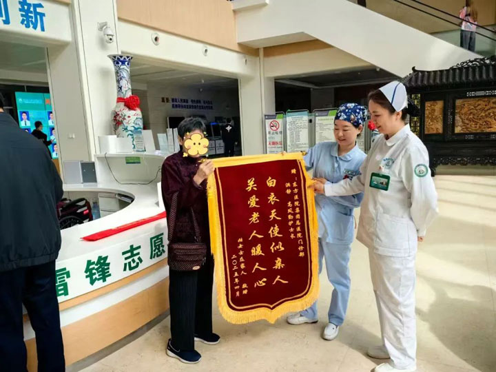 "优质的医疗服务不仅要专业,更要有温度。"门诊部护士长高凤勤带领下的护理团队在服务中格外注重细节:采血时提前焐热双手避免老人受凉,送药时用大字标签注明用法,每次离开前总不忘检查家中安全隐患。这些点滴关怀让医疗服务超越技术层面,真正走进患者心里。正如张阿姨所说:"她们送的不仅是药,更是安心。"一面锦旗,万分责任,未来,东方总院将持续深化服务,让更多患者在细微处感受到"东方温度",用实际行动诠释"健康守门人"的初心使命。