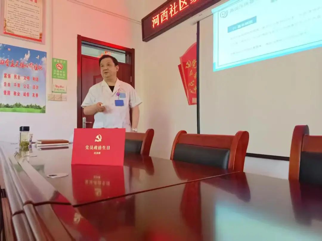 4月18日下午,在李郢孜镇河西社区服务中心的会议室里,三十余位老党员正专注聆听着由李郢孜医院杨江院长带来的健康讲座。针对老党员常见的高血压、糖尿病等慢性疾病,提供免费健康检查、疾病问诊、用药指导、发放宣传彩页等。