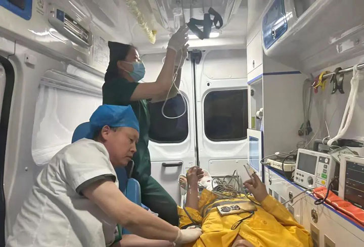 心电监护仪正常运转,静脉输液操作有条不紊地进行着。通过车载电台,车内人员不断向医院汇报病情,为院内提前做好接诊安排争取时间。到院后开通绿色通道,完善相关检查明确患者双侧胫腓骨骨折。立即将患者转运至手术室进行下一步处理。白衣天使们不仅关注身体状况,还耐心倾听患者的需求,给予心理上的安慰和支持。