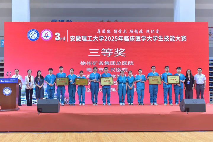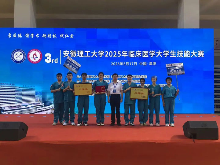 2025年5月17日,安徽理工大学临床医学技能大赛在阜阳师范大学隆重举行。本届大赛以“厚医德、博学术、砺精技、践仁爱”为主题,吸引了来自13家教学医院的16支精英队伍同台竞技。淮南东方医院集团总医院在刘立军教学院长的带领下,派出两支代表队参赛,凭借扎实的专业技能与出色的临场表现,斩获多项荣誉,展现了卓越的医学素养与团队协作精神。