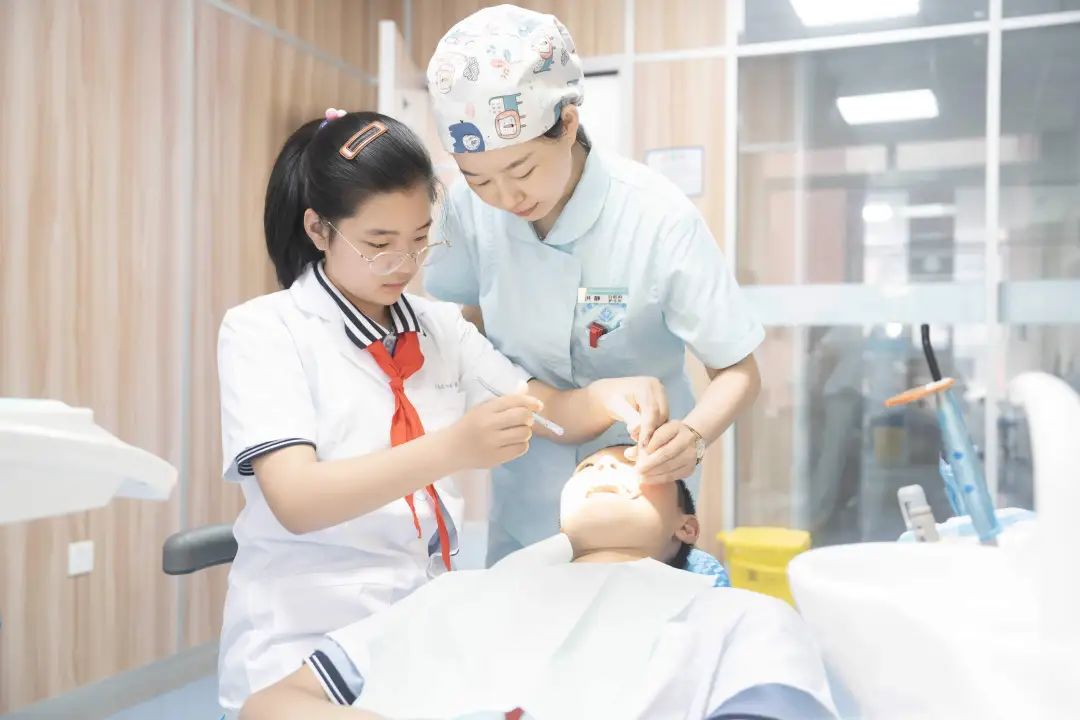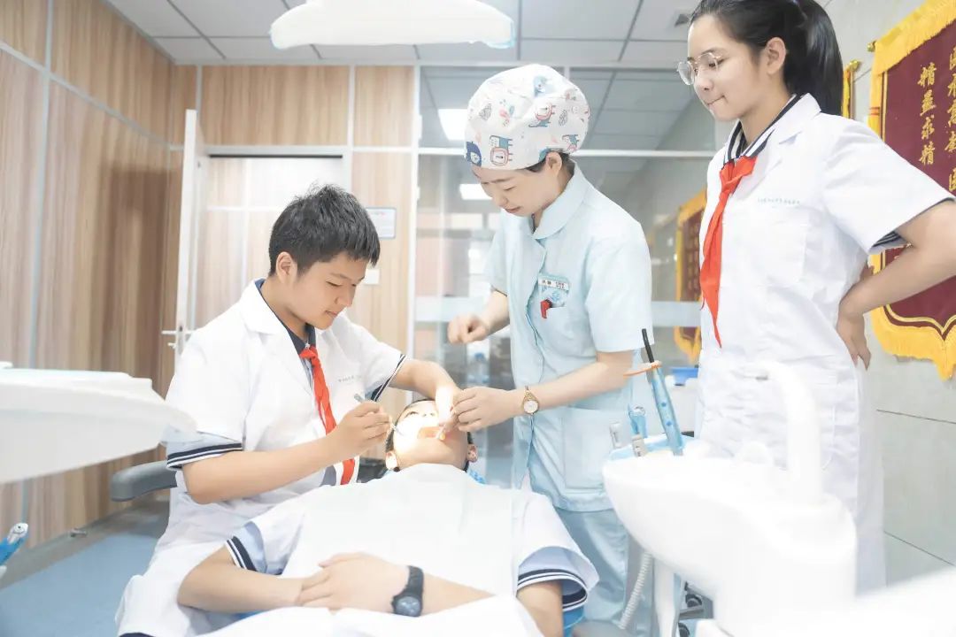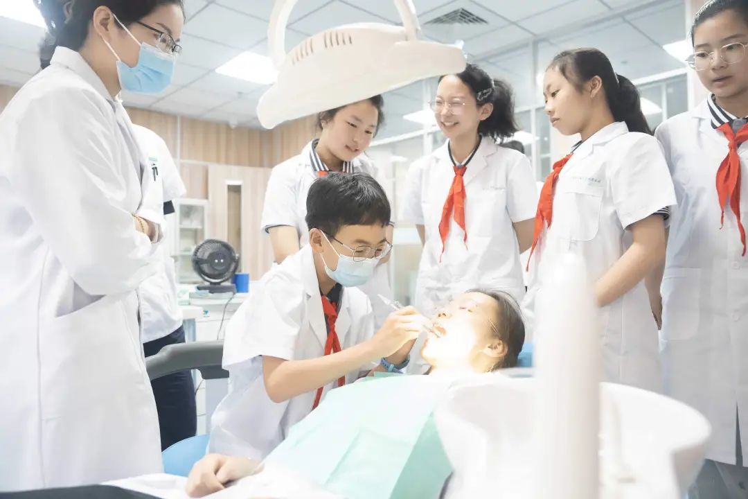走进口腔科,映入眼帘的是各种造型奇特的医疗器械,牙椅、无影灯、超声洁牙机……口腔科的医生给学生们讲解了口腔的基本结构和牙齿的功能。通过生动的牙齿模型,学生们知道了每一颗牙齿都有着独特的作用。体验环节让学生们兴奋不已。他们学着医生的样子给同学检查牙齿。这次体验不仅让他们学到了丰富的口腔知识和实用的操作技能,更是体会到了口腔科医生这份职业的责任与不易。