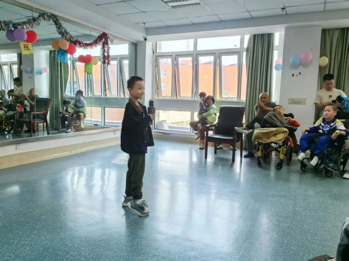 活动在一曲充满童趣的《蜗牛与黄鹂鸟》中拉开帷幕,康复科儿童组的全体医护人员登台献唱,灵动的歌声与活泼的表演瞬间点燃现场氛围。随后,孩子们纷纷登上舞台,展现出令人惊叹的才华:王伟豪小朋友声情并茂地朗诵《古朗月行》,曹韵杰用清澈的童声演绎热门歌曲《踏山河》,储皓睿则以一首《清平乐·村居》传递古典诗词的韵律之美。从古诗朗诵到儿歌演唱,从《两只老虎》到《长歌行》,每一个节目都凝聚着孩子们的努力与勇气。一位家长动情地说:“孩子为了表演活动,克服困难反复练习,今天看到他自信地站在台上,我眼泪都止不住。”