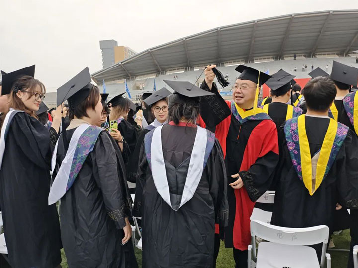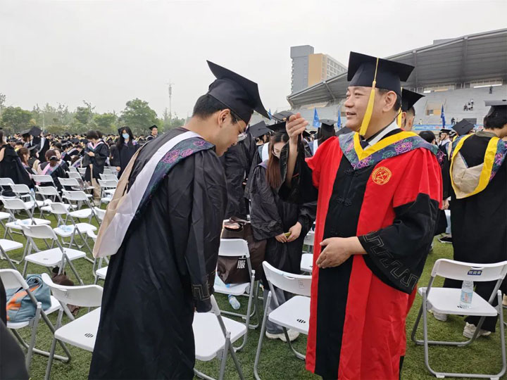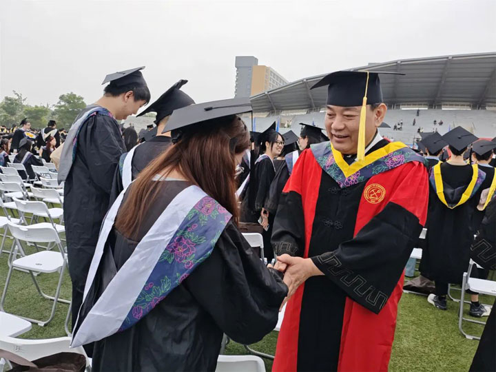 淮南东方医院集团鲁殿佩副总经理、科教科刘立军院长、科教科马玲玲老师作为院方代表受邀出席。在庄严的仪式中,鲁殿佩副总经理、刘立军院长亲手为身着学位服的医学本科生们拨穗正冠。这一庄重仪式,不仅象征着莘莘学子在东方医院学有所成,更满载着师长们对他们未来医路前程似锦、不负韶华的深切祝福。