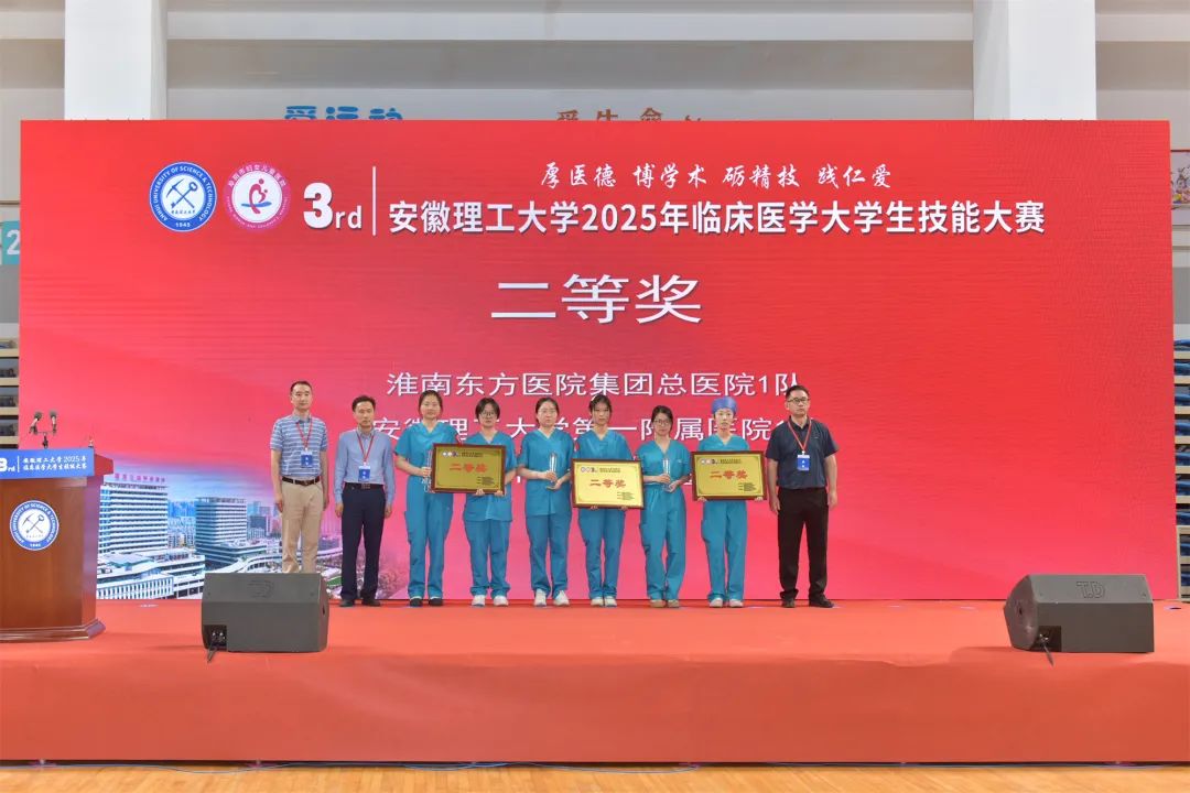 回望成长之路,2020级东方临床班的学子们完成了从懵懂青年到肩负使命的医学生的蜕变。他们的优秀在竞赛中熠熠生辉:2025年安徽理工大学临床医学大学生技能大赛中,他们凭借扎实过硬的临床技能与沉着出色的临场发挥,从16支强劲队伍中脱颖而出,勇夺多项荣誉,其卓越的医学专业素养与精诚协作的团队精神,赢得了广泛赞誉。