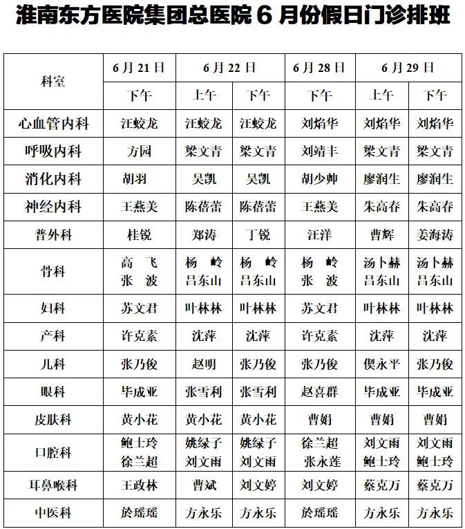 很多需要去医院问诊的患者都遇到过这样的情况:平时工作忙,只有周末或者节假日才有时间,可是这个时候医生却不坐诊,实在没有办法的情况下就得请假看病,非常不方便。为了方便市民患者就医,满足患者不同时段的就诊需求,东方总院正式实行“节假日无休门诊”,为了提高门诊断力量,特安排有经验的高级职称的专家坐诊。
