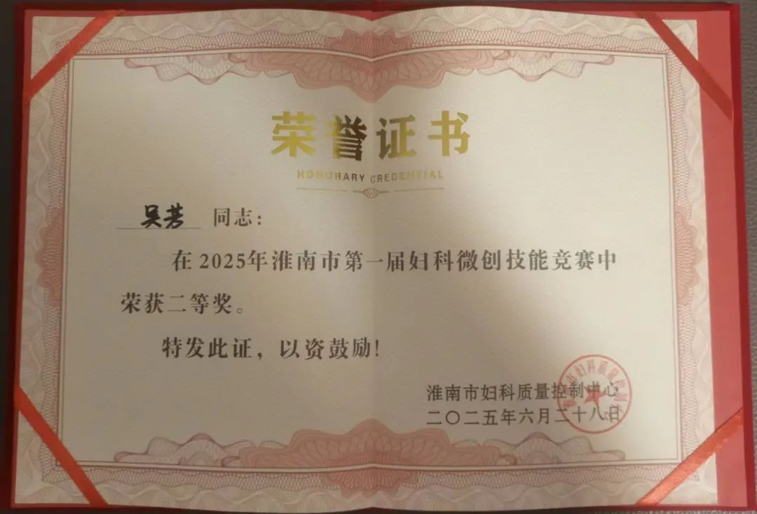 此次佳绩的取得,是对王莎莎、吴芳两位医师个人能力的肯定,更是东方总院妇产科团队整体实力与人才培养成果的有力证明。东方总院妇产科将持续精进微创技术,推动学科发展,为守护淮南地区广大女性朋友的生命健康贡献更精湛的医术与更温暖的关怀!