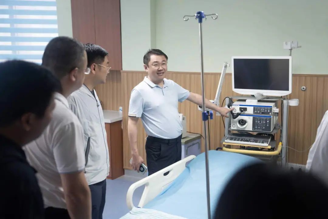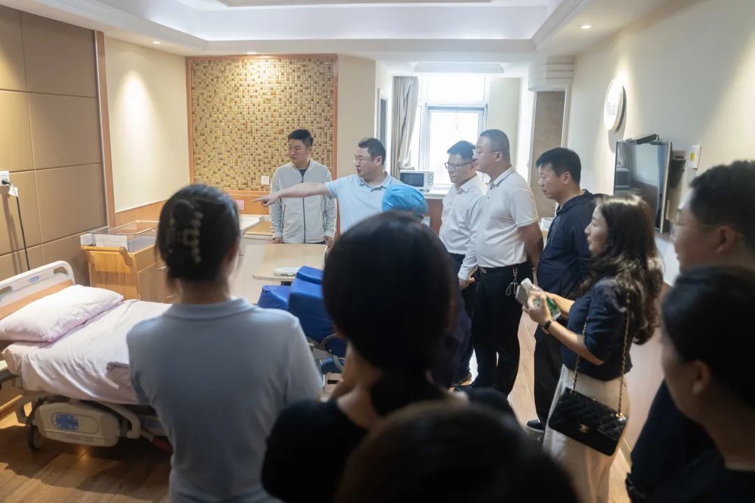 纸上谈兵终觉浅,座谈会后,江董事长亲自引导企业家们深入医院实地参观。从精准高效的云影像诊断中心,到流程严密的检验中心,从技术精湛的内镜中心,到温馨如家的旭日母子中心,特别是代表外科技术高峰的机器人手术中心——企业家们被国际一流的尖端设备、精湛可靠的医疗技术和充满人文关怀的环境深深吸引。他们不时驻足,与专家深入交流,对医院在技术攻坚与人性化服务上的卓越融合赞不绝口。此次实地参观,不仅让企业家们对医疗健康产业的前沿动态有了更直观的认识,也为未来可能的跨行业合作埋下了希望的种子。