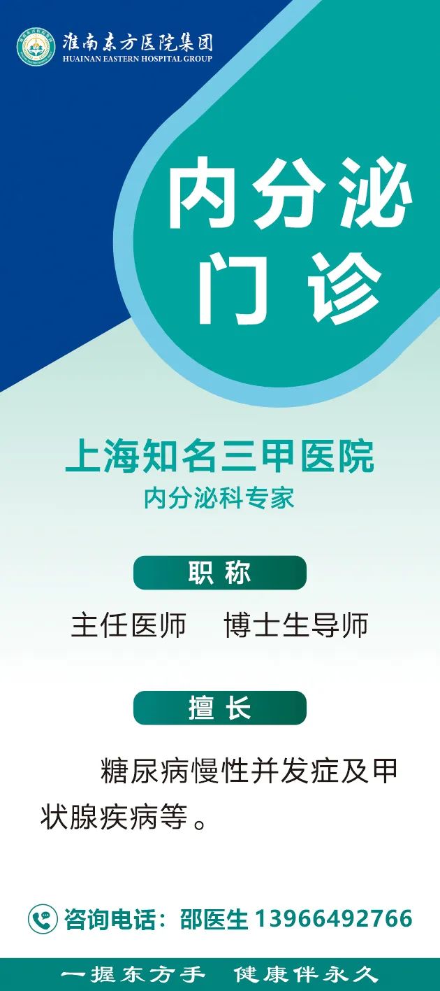 淮南东方医院集团将于7月26日邀请上海知名三甲医院内分泌科专家来院坐诊,有需求的市民可提前预约,把握与国内一线专家面对面交流的宝贵机会。