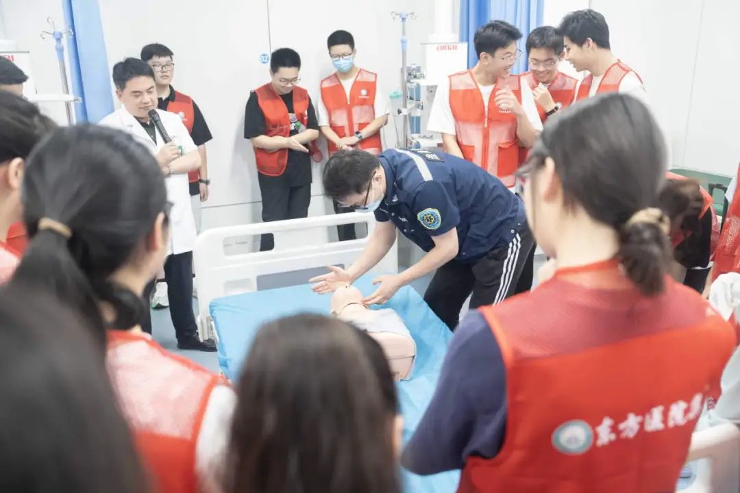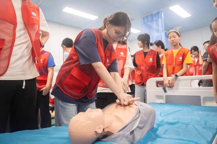 在急诊科紧张而有序的模拟训练区,年轻学子们直面生死时速。专业急救医生手把手指导,从判断意识、呼救到精准定位按压点,学生们神情专注,在人体模型上反复练习心肺复苏的每一个关键动作。海姆立克急救法的学习同样热火朝天,“剪刀、石头、布”的口诀配合着有力的冲击动作,实用的急救技能成为他们此行的宝贵收获。“以前只在电视里看医生抢救,今天自己学会了,感觉真的能帮到人!”一位高中生擦着汗,眼神里闪烁着掌握救命本领的兴奋与责任感。