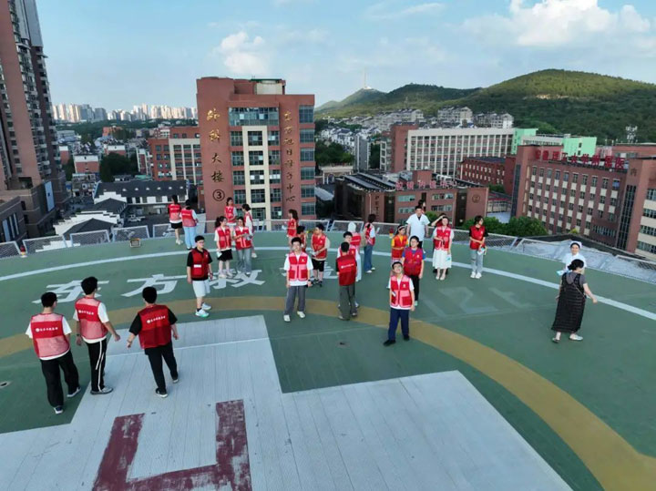 体验营的最后旅程是登上医院顶层的直升机停机坪。夕阳映照下,巨大的救援直升机停机坪,令学生们惊叹不已。医护人员现场讲解航空医疗救援的运作流程、黄金救援时间的意义,以及直升机如何为危重患者架起跨越地域的生命之桥。站在高处俯瞰医院全景,父母们日常守护生命的战场有了更宏阔的立体图景,这一刻,医疗救援的维度被极大拓宽,医者守护生命的决心与力量,深深烙印在年轻的心底。