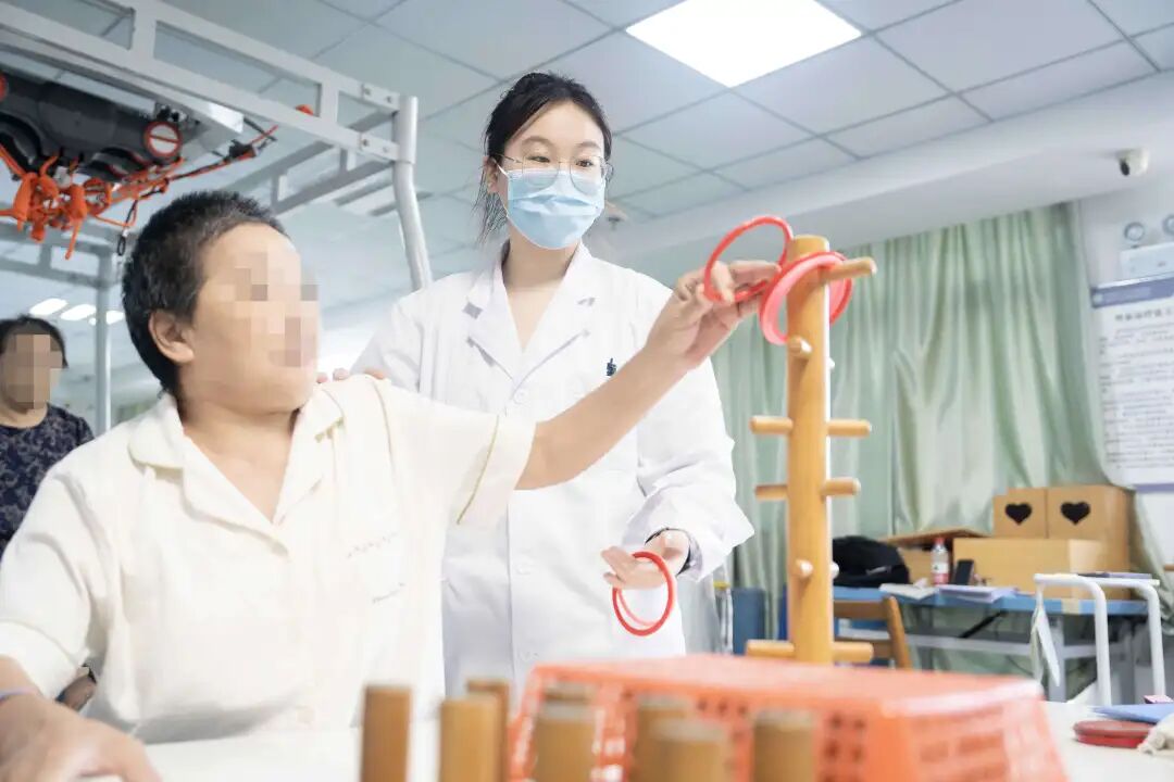 在这里,康复治疗不是机械地执行方案,而是基于全面评估的个性化介入。83岁的王女士她因脑梗死后出现严重肢体功能障碍,刚入院时连从轮椅坐稳都困难,坐站转移完全依赖他人。东方总院康复治疗师杜凤琳为她制定阶段性肌力与平衡功能训练,结合神经促通技术和任务导向训练,仅一疗程后,王女士的Holden步行功能分级已从低水平提升至3级,实现了在辅助下站立和短距离行走。