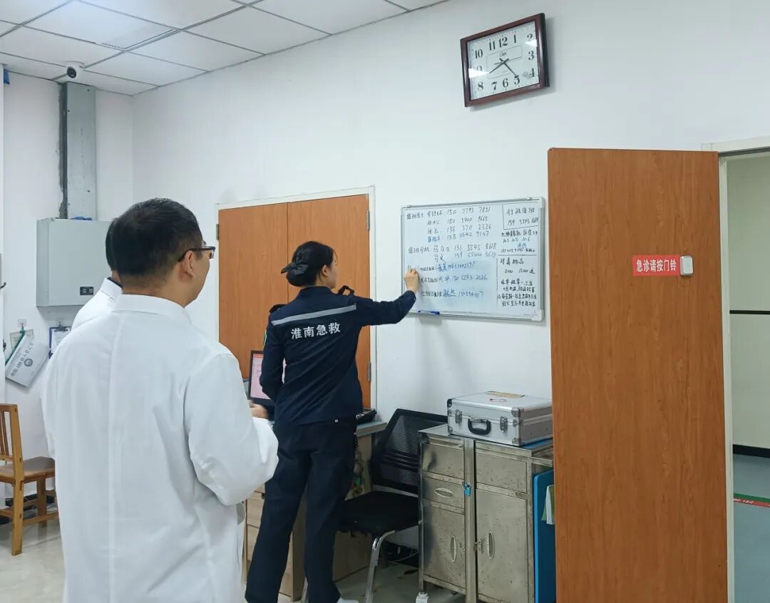 从晨光微露到夜色深沉,余涛院长主动放弃休息,亲自带领当日的行政值班人员,与一线医务工作者并肩作战。他们深入急诊、巡查各临床科室,仔细询问诊疗情况,协调解决突发问题。每到一个科室,余院长都反复强调:“病人的事永远是最重要的,越是举国欢庆的节假日,我们越不能有丝毫松懈,必须全力保障每一位患者的就医安全。”这种“舍小家为大家”的奉献精神,并非一时之举。不论是在日常诊疗工作中,还是在节假日期间,广济医院各科室在科主任和护士长的带领下,自觉高效运转,有力保障了淮南市民的假日安心就医。