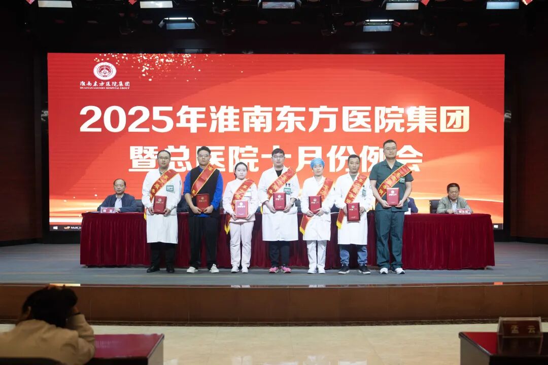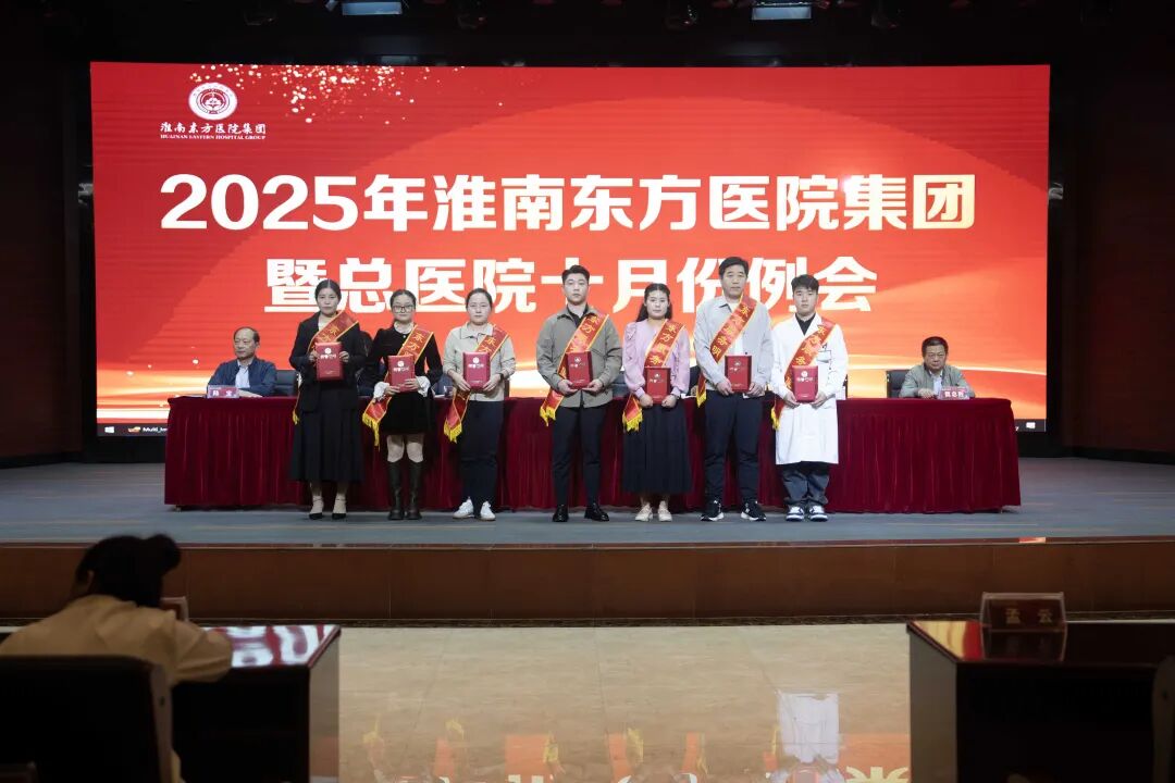 随后,肿瘤医院胡继年院长宣读关于表彰淮南东方医院集团2025年第三季度“东方服务明星”先进个人决定。《决定》授予总院李岩、毕成亚、赵祖芳、刘罗海、张斌斌、管石运;凤凰医院苏雨生、陈鹏;肿瘤医院王波;广济医院杨秀雅、潘凡杰;新庄孜医院陈礼超;田东医院欧玉青;寿县济民医院丛超强;谢桥医院高亚南共15 位同志“东方服务明星”荣誉称号。希望全集团职工要向受表彰先进学习,以群众满意为目标,牢固树立服务和创先争优意识,为集团的改革与发展做出新的更大的贡献。集团领导现场为获奖服务明星进行颁奖。