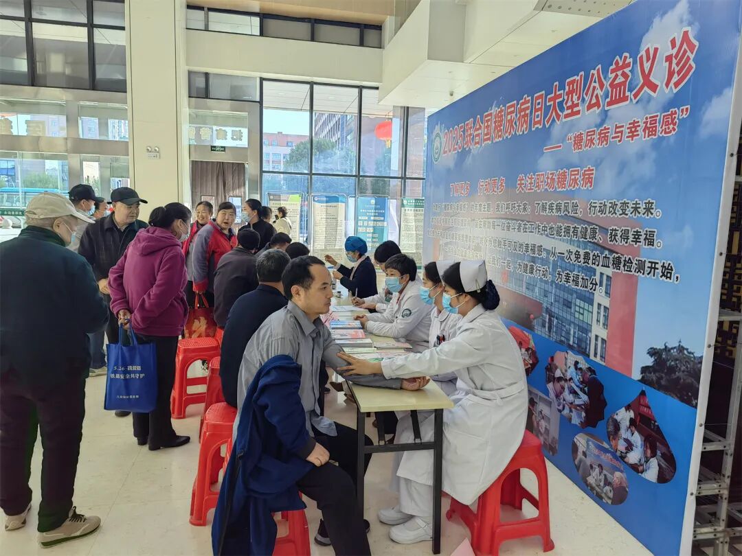为响应2025年联合国糖尿病日“糖尿病与幸福感”的年度主题,11月11日上午,东方医院集团内分泌科医疗中心在东方总院门诊大楼一楼大厅举办大型公益义诊活动。本次活动特别将目光投向“职场糖尿病”,旨在帮助广大在职奋斗者在辛勤工作之余,能够更好地管理健康、提升生活幸福感。