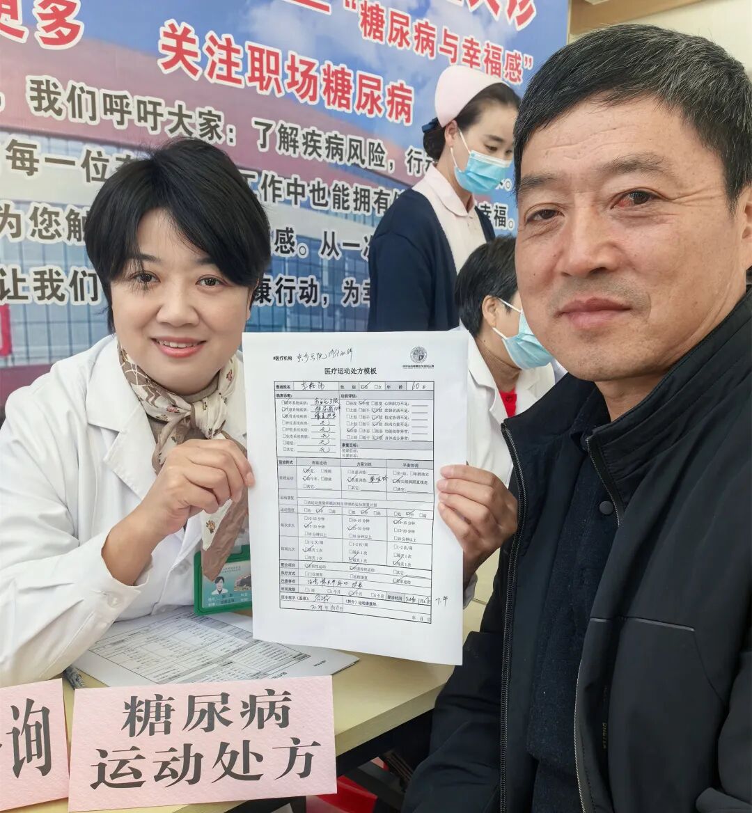 免费血糖、血压检测点前始终排着长队,许多市民借此机会了解了自身的基础健康状况。而本次义诊最大的亮点,是为5位糖尿病患者现场量身定制并开具了“糖尿病运动处方”。这一创新服务将科学的运动指导作为治疗方案的重要组成部分,为患者提供了精准、个性化的非药物干预手段,帮助他们通过安全有效的运动来控糖、增健,赢得了现场群众的高度赞誉。