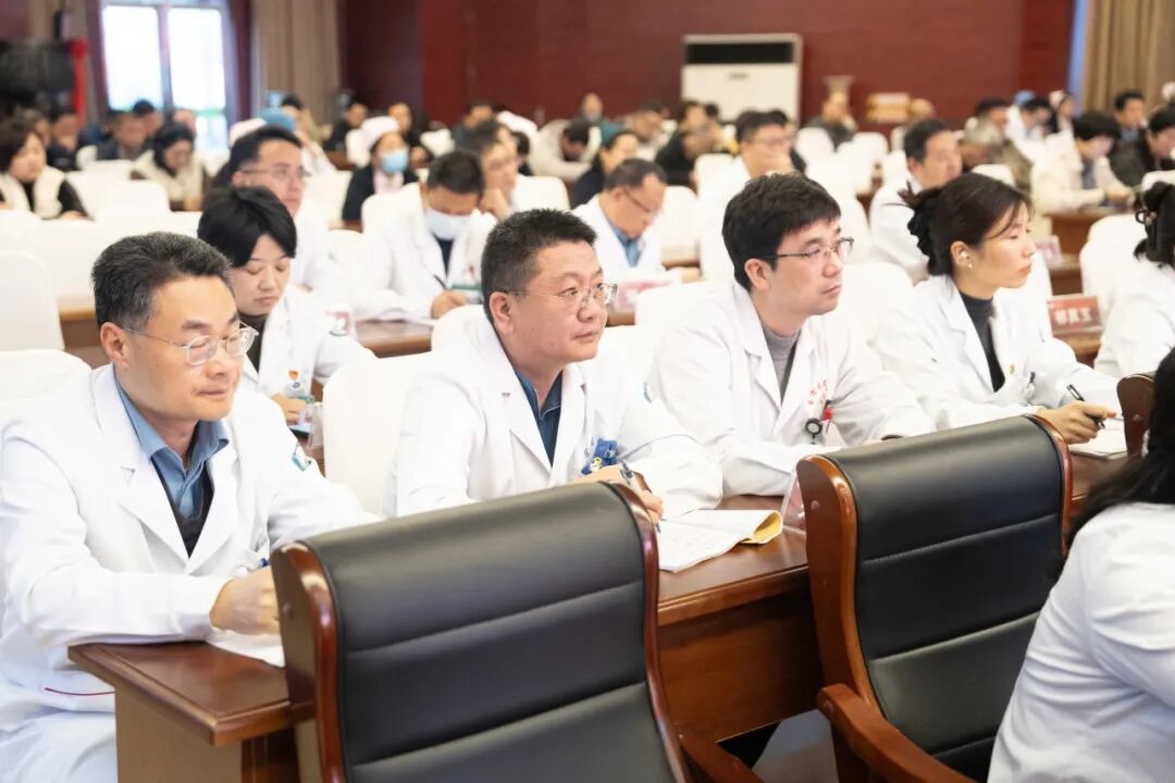 会前,为突出各专科技术特色和亮点,增加科室间了解和业务融合,总院中医科护士长卞玲洁就中医特色护理项目开展情况进行了宣讲和介绍。医院集团领导层、各医院领导班子、医疗中心院长、总院各科室主任、副主任及护士长参加了会议。