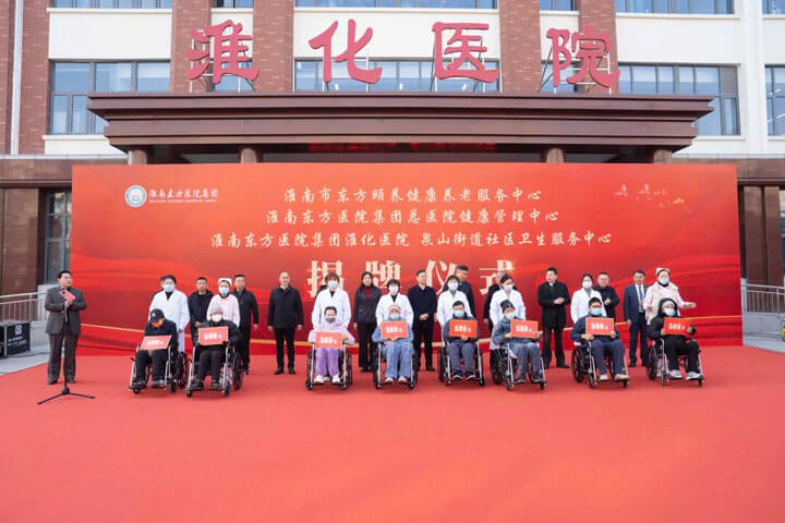 市民政局副局长宫涛在致辞中指出,当前我市60周岁以上老年人口已达75.29万人,老龄化程度日益加深。淮化医养结合项目的建成启用,正是我市积极应对“银发浪潮”、探索“医疗+养老”一体化模式的重要成果。他充分肯定了东方医院集团的社会责任感,并期望项目能充分发挥特色优势,推动资源深度融合,为老年人提供更加精准、专业、优质的养老服务,用心用情托起幸福“夕阳红”,努力打造可复制、可推广的区域医养结合示范标杆。