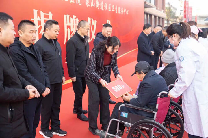 在热烈的掌声中,主席台各位领导共同为“淮化医养结合项目”揭牌。礼炮再次响起,标志着这一综合服务体正式全面投入运营。