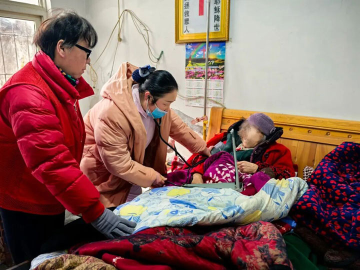 “天寒地冻的,你们医生上门来给我做检查,教我怎么吃药,真是雪中送炭,谢谢孩子们!”老人紧握着护士吴家梅的手,连连道谢。医护人员细心讲解药品用法用量,叮嘱老人不要随意增减药品用量,并将重点写在药盒上,确保老人用药安全。