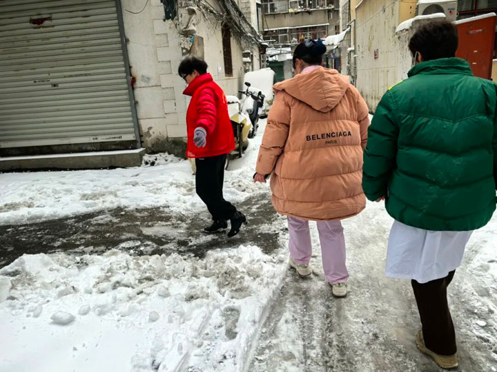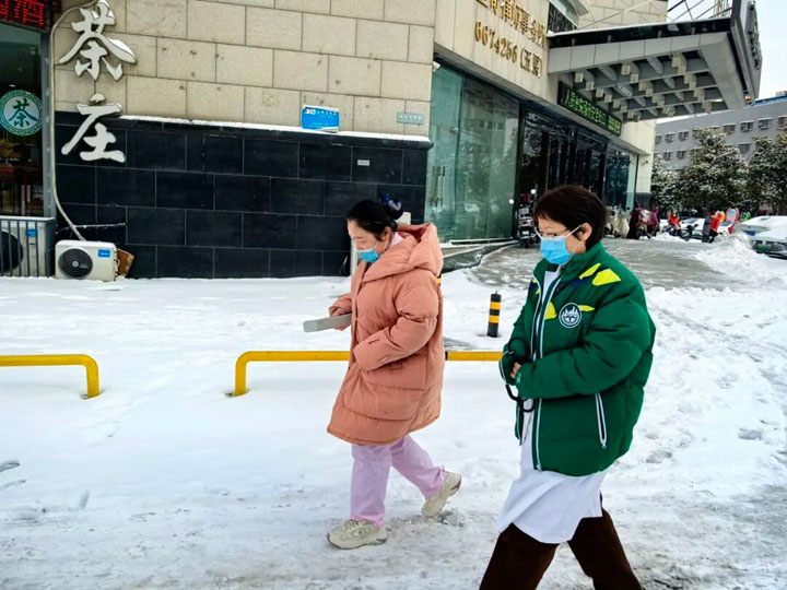 风雪过后气温骤降,路面湿滑,周边社区高龄、独居老人的健康状况,成为综合门诊部医护人员放心不下的牵挂。遂联系柏园党群服务中心,收集不便出门购药的独居老人信息,踏雪上门,送医送药,确保老人们供药用药的连续性。