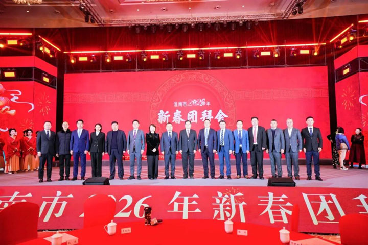2月12日上午,淮南市2026年春节团拜会在淮南迎宾馆举行,全市各界人士欢聚一堂、互致祝福、共贺新春。市委书记朱艾勇出席并讲话,市委副书记、市长张志强主持。市人大常委会主任陈儒江,市政协主席蔡宜骅,市委副书记时志远,有关市级领导同志出席。