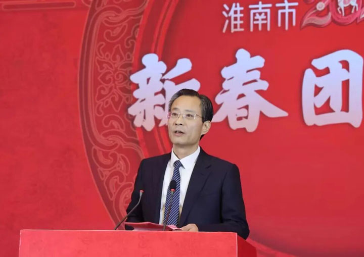 朱艾勇在致辞中表示,过去一年,在习近平新时代中国特色社会主义思想的科学指引下,在省委的坚强领导下,全市上下坚持高质量发展根本导向不动摇,各项工作稳中有进、稳中向好、稳中提质,美好淮南建设迈出坚实步伐。市委书记朱艾勇致辞。