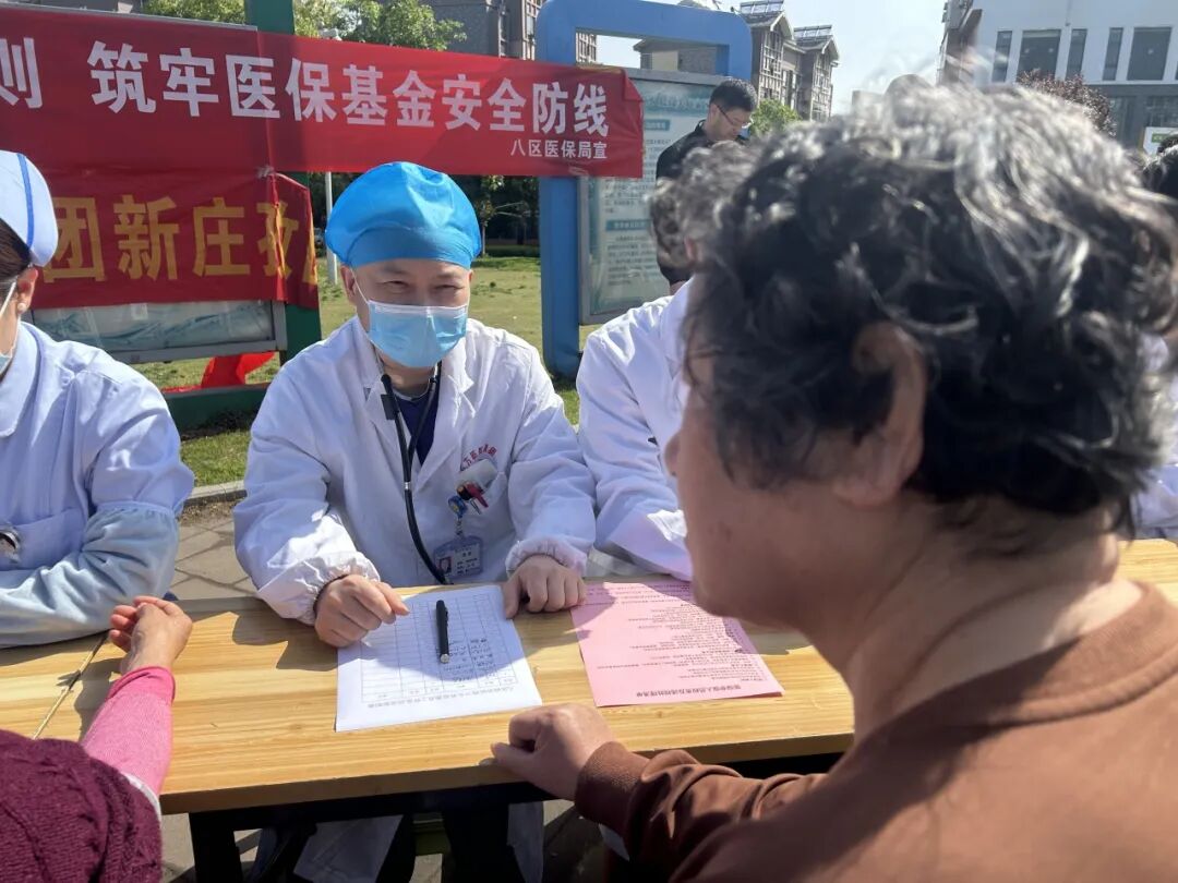 活动现场,新庄孜医院组织专业医护人员搭建服务台,为过往群众提供免费血压测量、血糖检测等便民健康服务,医护人员耐心细致地为群众解读检测结果,讲解高血压、糖尿病等常见慢性病的预防、护理知识,引导群众树立科学健康的生活理念。