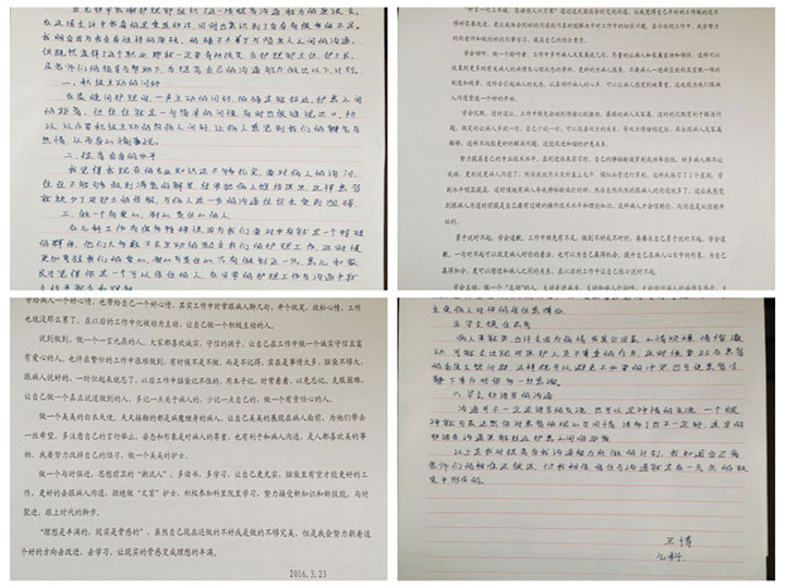 护理部刘敏主任在座谈会最后也对大家提出了要求:希望大家通过此次座谈会的交流,结合自身情况,寻找不足,思考解决措施,并拟定工作计划,制定目标,为提升护患沟通技巧而努力;同时在日常工作中做到每天完成治疗后,主动走进病房,在集团2016精细管理年中把优质服务做到最好。