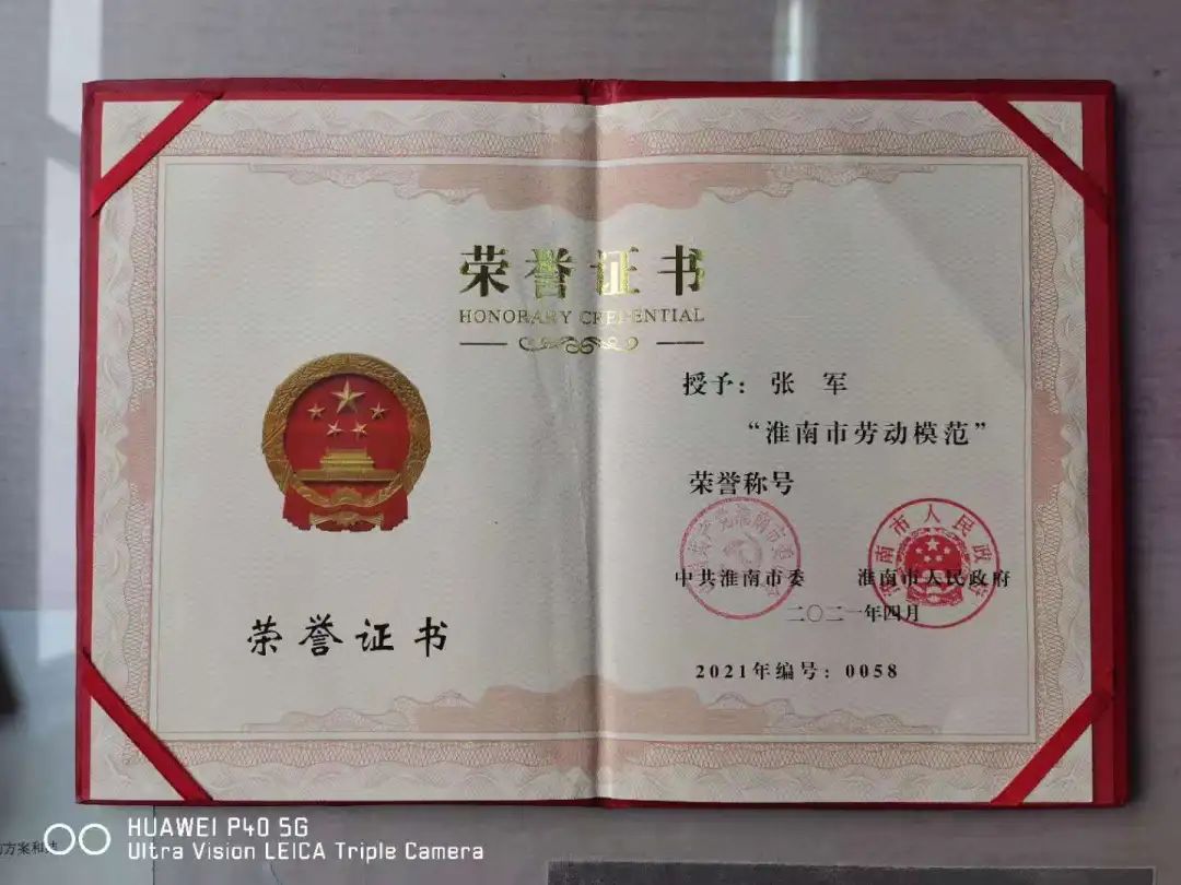 “金奖银奖不如病人的夸奖,金杯银杯不如病人的口碑”。行医多少年来,张军同志脚踏实地的工作作风,视病人如亲人的工作态度和无私奉献精神,深得病人及同行的称赞。工作期间多次收到病人锦旗及感谢信,并多次拒收红包,坚持廉洁行医。多次荣获集团优秀职工称号,并于2018年荣获淮南市五一劳动奖章。