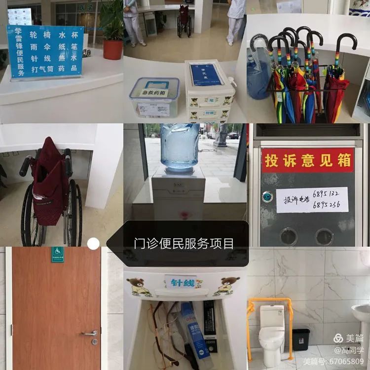 服务无小事,新门诊一楼大厅现设有学雷锋志愿者服务台,相应提供了一系列便民措施,如轮椅、饮水机、雨伞、爱心便民盒、充电宝等等,真正解决患者困难,满足患者需求。