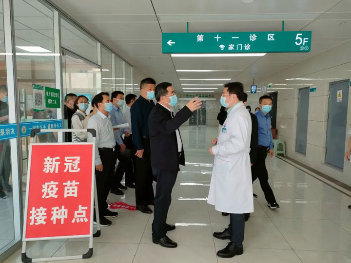 6月23日上午,国家卫生健康委综合监督局局长赵廷配、国家卫生健康委监督局处长贾波、重庆市卫生监督执法总队处长余书一行到淮南东方总院预防接种门诊视察,省卫生健康委副主任高俊文、省计生协专职副会长李叶西、省卫生健康委综合监督处处长夏北海、淮南市副市长陆晞、市卫生健康委党组书记汪世福及淮南东方医院集团董事长江永强等人陪同。