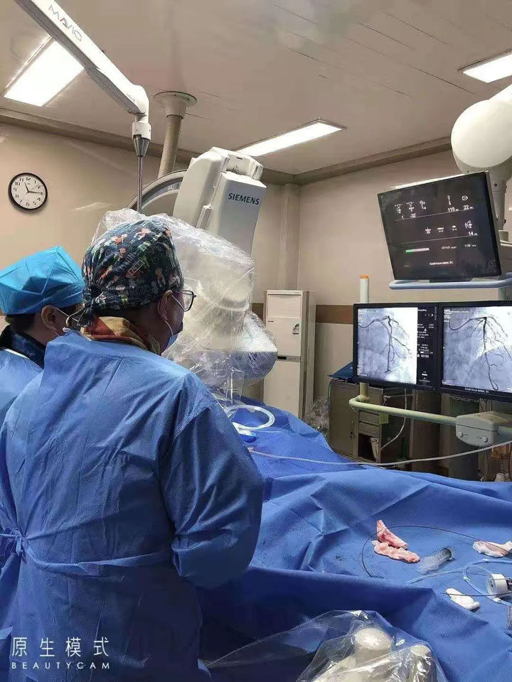 胸痛中心团队医生——心血管内科副主任王其虎、医生宁伟、熊堂鹏为患者施行了急诊冠状动脉造影+取栓术。术中造影发现患者心脏回旋支中端血管完全闭塞,大面积心肌没有血供,医生紧急使用取栓装置由远至近多次抽吸血栓,完成血运重建。“我们采用的这种取栓装置可以直接将大的血栓全部吸出体外,人体内将不再残留小血块,大大降低产生并发症的几率。”心血管内科医生熊堂鹏介绍说,这项技术可以免去冠脉支架的植入,即“介入无植入”,为广大冠心病患者提供了更加安全、有效的治疗手段。