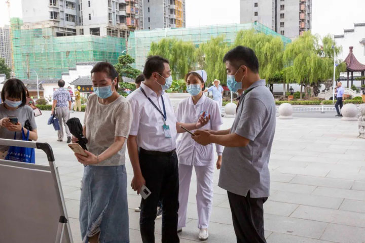 抓紧抓实抓牢疫情防控工作为做好“新冠肺炎”疫情防控工作,根据省疫情防控应急综合指挥部的部署要求,省卫健委开展全省医疗卫生机构疫情防控督导工作。2021年8月6日下午,省卫健委体改处处长王长丰、安徽省疾控中心艾防科科长程晓莉、安医大二附院院感科主任杨锡瑶、省卫健委综合监督所卫生监督员陈健一行到淮南东方总院预防接种门诊等地进行疫情防控督导。淮南市卫健委副主任邸允辉、法律监督科科长方磊以及淮南东方医院集团董事长江永强、集团副总经理鲁殿佩、总院副院长朱胜、总院院长助理樊忠胜、感控科科长杨淮丽等人陪同。