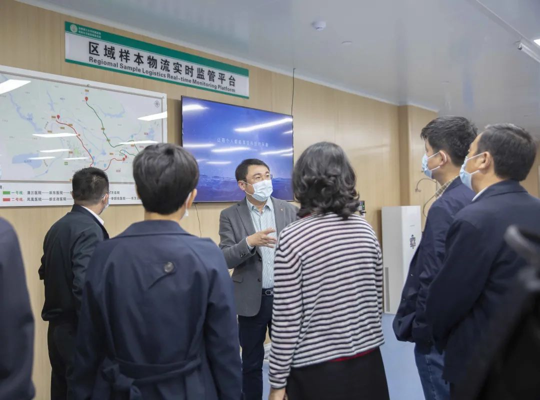 在江董事长的引导下,各位领导首先来到新门诊大楼的检验科。总院检验科是整个集团检验工作的核心,患者在集团任何一家基层医院做检查,都会由专门的冷链运输车安全地运送到集团检验中心,由最专业的人员和设备进行分析检验后将报告发回基层医院。在保证效率的前提下,也保证了检验质量,检验结果的同质化、准确性。