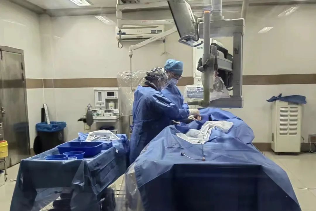 前些时候贾老先生右眼突发失明5小时,在家属陪同下,前来东方总院急诊科,1月24日晚上接到急诊会诊后,被诊断为:眼动脉栓塞导致眼动脉急性缺血引发的突发性失明,俗称“眼卒中”。黄旭东院长得知贾先生已经失明5小时了,而经皮眼动脉溶栓治疗最佳手术时间是失明后6小时以内,情况十分紧急!时间越久,失明风险越大,看着贾先生家属焦急的脸,黄院长当机立断,立即紧急启动眼动脉溶栓治疗绿色通道,为贾先生量身定制了手术方案。当天晚上,黄旭东介入团队放弃了晚上休息时间,在导管室老师们的配合帮助下,进行术前介入溶栓准备,为贾先生进行了手术。