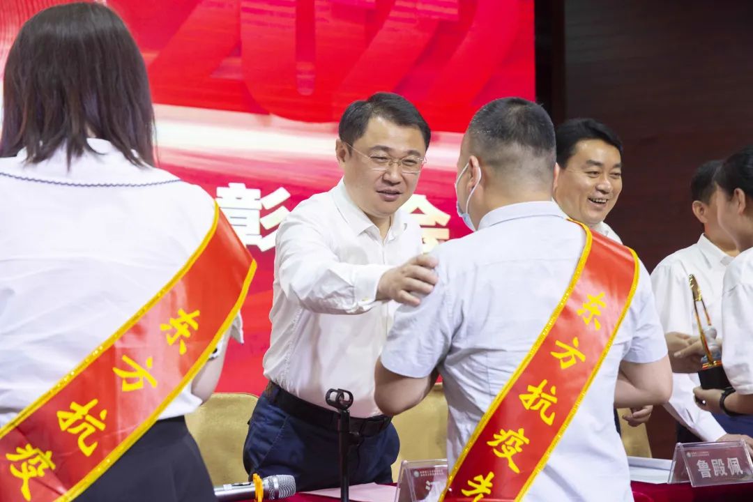 面对来势汹汹的新冠疫情,集团上下毅然决然的投入到疫情防控工作中,党员干部冲锋在前,发挥模范带头作用,带领广大医务工作者坚守在核酸检测、发热门诊、传染病医院及全市各隔离点等疫情防控最前线。其中涌现出一批临危不惧、表现突出的先进集体和个人,为全市疫情防控做出了不可磨灭的贡献,为医院集团争得了荣誉,赢得了满满的正能量。集团副总经理鲁殿佩同志宣读《关于表彰东方医院集团抗疫先进集体、抗疫先锋和抗疫先进个人的决定》并进行颁奖。