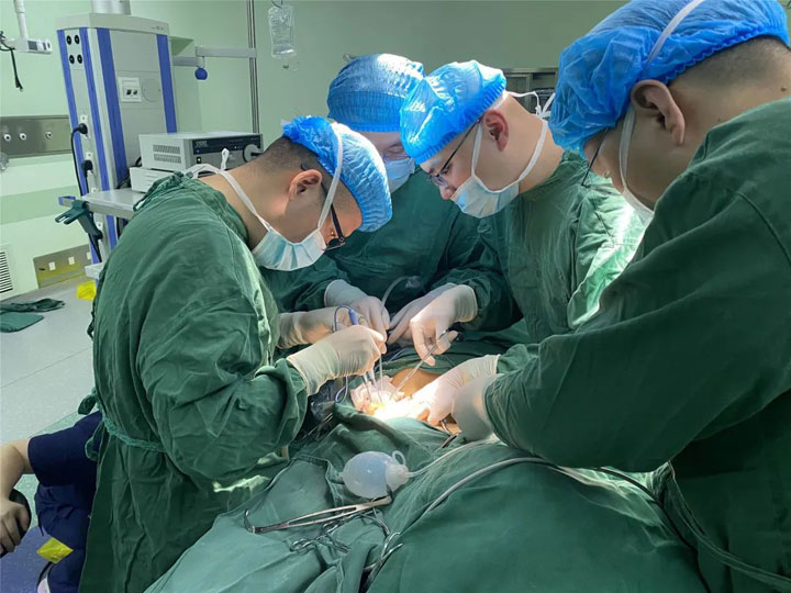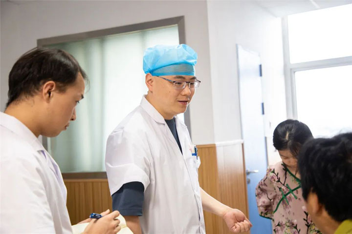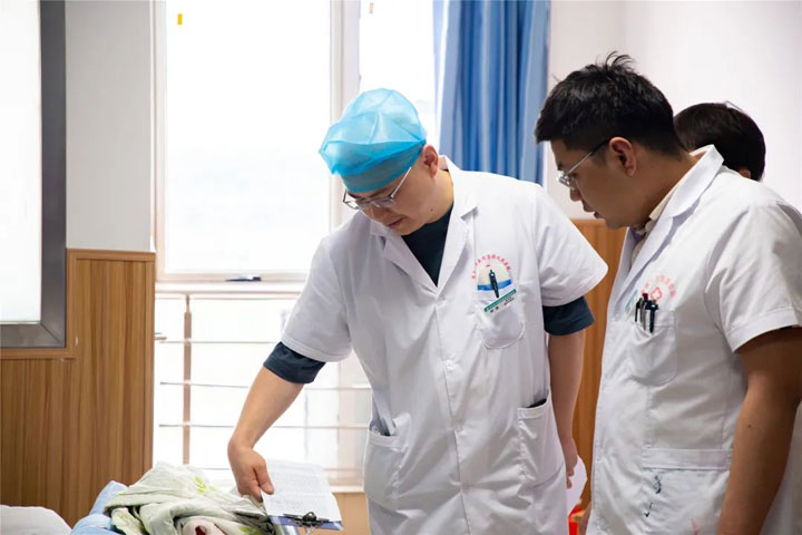 他与患者家人耐心沟通并详尽说明情况,又带领团队制定了完善的手术方案,一切准备得当,郑涛果断主刀为患者实施了“剖腹探查+肠道异物取出术”,术中发现患者果然因吞咽瓶盖致病。手术紧锣密鼓进展也非常顺利,术后,因患者小脑萎缩、多处肌肉萎缩、身体机能较差,并发症也接踵而来,致其无法下床活动。郑涛最牵挂他的术后恢复,于是当起了“护理员”,每天和患者奶奶一遍又一遍按摩、搀扶,助其下床活动,手脚渐渐有了些力气。忽然一天,奶奶惊惶地瞪大眼睛跑来护理站,“大夫、护士,快快看看我孙子,他快没气了……”郑涛以最快的速度冲进病房,发现患者气管正被痰卡住,面色苍白。原来,患者由于身体机能原因不能自主咳痰,导致肺部出现感染,由此恶性反复、雪上加霜。郑涛马上动手为患者清痰,并采取抗感染治疗,接着手把手教奶奶用辅助器帮其咳痰,但由于痰阻过重,情况改善不明显,最后不得已对其进行气管切开,一场危机方才化险为夷。患者住院期间,郑涛和医护人员时刻来到床头,鼓励患者并帮助护理,因为长期为孙子担惊受怕,奶奶有时情绪激动,在没了解情况时向医护人员叫喊、发牢骚,但无论奶奶如何坏脾气,郑涛都竖起食指在唇边摇摇,示意医护人员不要争吵、多些理解和谅解……平时一有机会,他也会去看患者,和奶奶聊天,安慰她,帮她缓解压力。一桩桩、一件件,患者奶奶都看在眼里,逐渐变得温和起来。一番心血没有白费,转眼到了患者出院的日子。白发苍苍的老奶奶临走时说:“谢谢你,郑大夫!是你带着医生护士们救了我孙子,你们是好人。我之前脾气不好,请你们别放在心上!祝你们工作顺利,一生平安……”