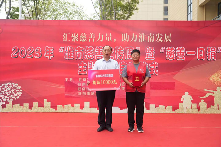 2023年9月5日,在全国第八个“中华慈善日”来临之际,为深入贯彻习近平总书记关于慈善事业的重要指示精神,加大对困难群众帮扶力度,市直机关工委、市民政局联合开展2023年“慈善一日捐”活动。淮南东方医院集团总医院党委书记陆宝代表医院集团参加活动,并捐助善款1万元。