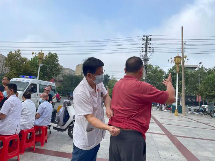 9月16日上午,新庄孜医院医护人员再次来到锦绣康城小区门口广场,为小区居民提供免费问诊、查体、血压、血糖测量、健康咨询等。