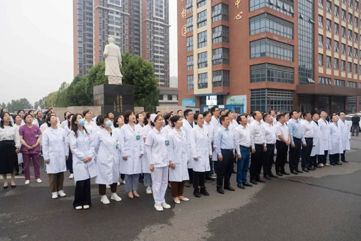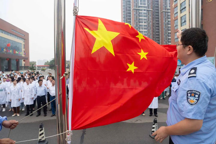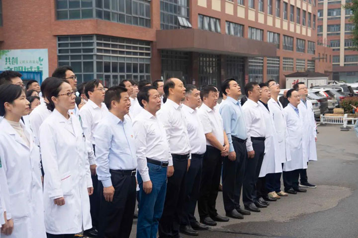 身在国旗下,青年医师代表感慨颇多:“作为一名守护生命的医者,我们要怀着对未来的梦想,怀着对医疗工作这个职业的无限热爱,怀着在这里建功立业的追求,牢记前辈嘱托,要不惧艰险、不负所望,在为医院、为社会的服务中,展现青春风采,实现人生价值。”
