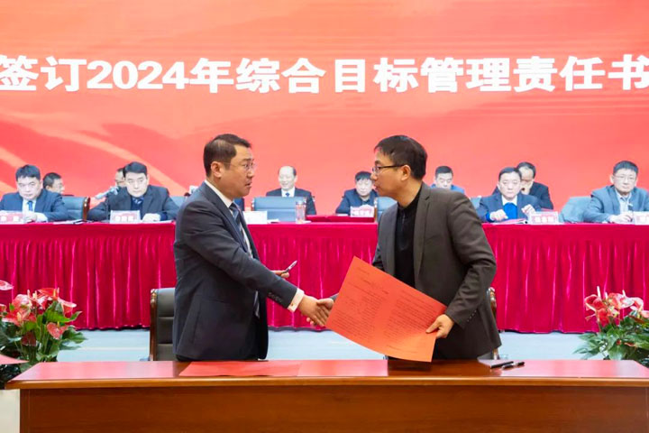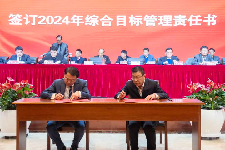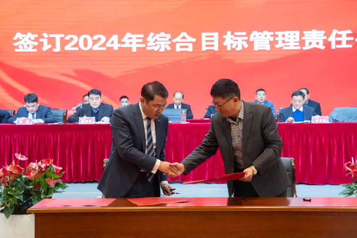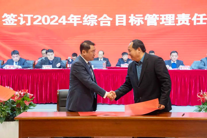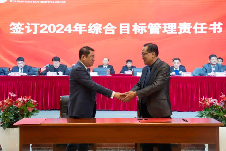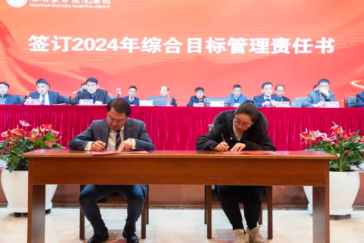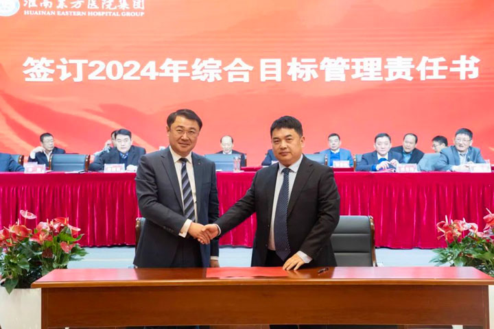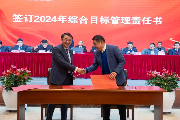 江永强董事长与“五大六小”医院院长及康宝药业签订2024年综合目标管理责任书。